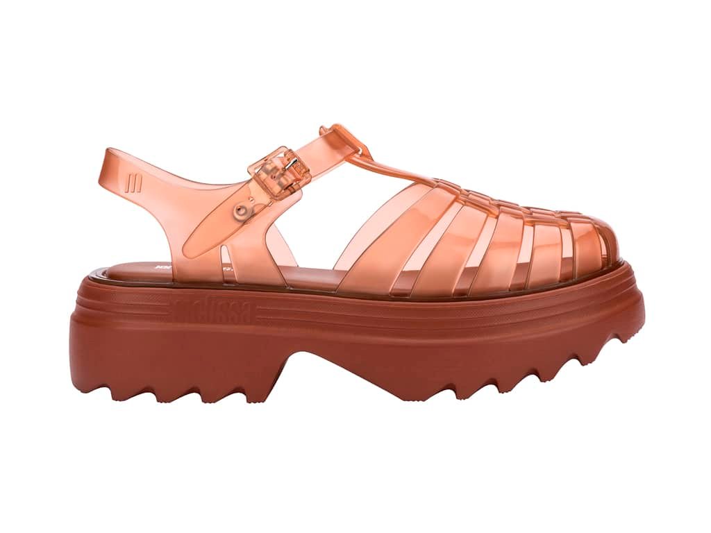 El estilo clásico y atemporal de Melissa Possession Platform II brinda la posibilidad de explorar diferentes combinaciones de looks casual en su diseño, siendo su versatilidad el gran punto fuerte. El modelo tiene una parte superior y estructura de PVC Full Plastic, suela plana y tacón de 5 cm.