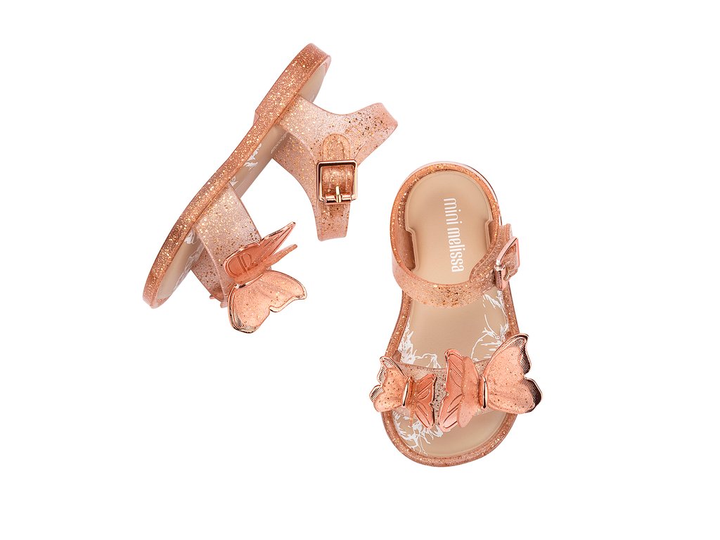La sandalia Mini Melissa Fly III para bebé es la elección perfecta. Con un diseño ligero, cómodo y súper bonito, le aporta un encanto especial gracias a su doble aplique de mariposa en la parte superior, que le da un toque aún más encantador.